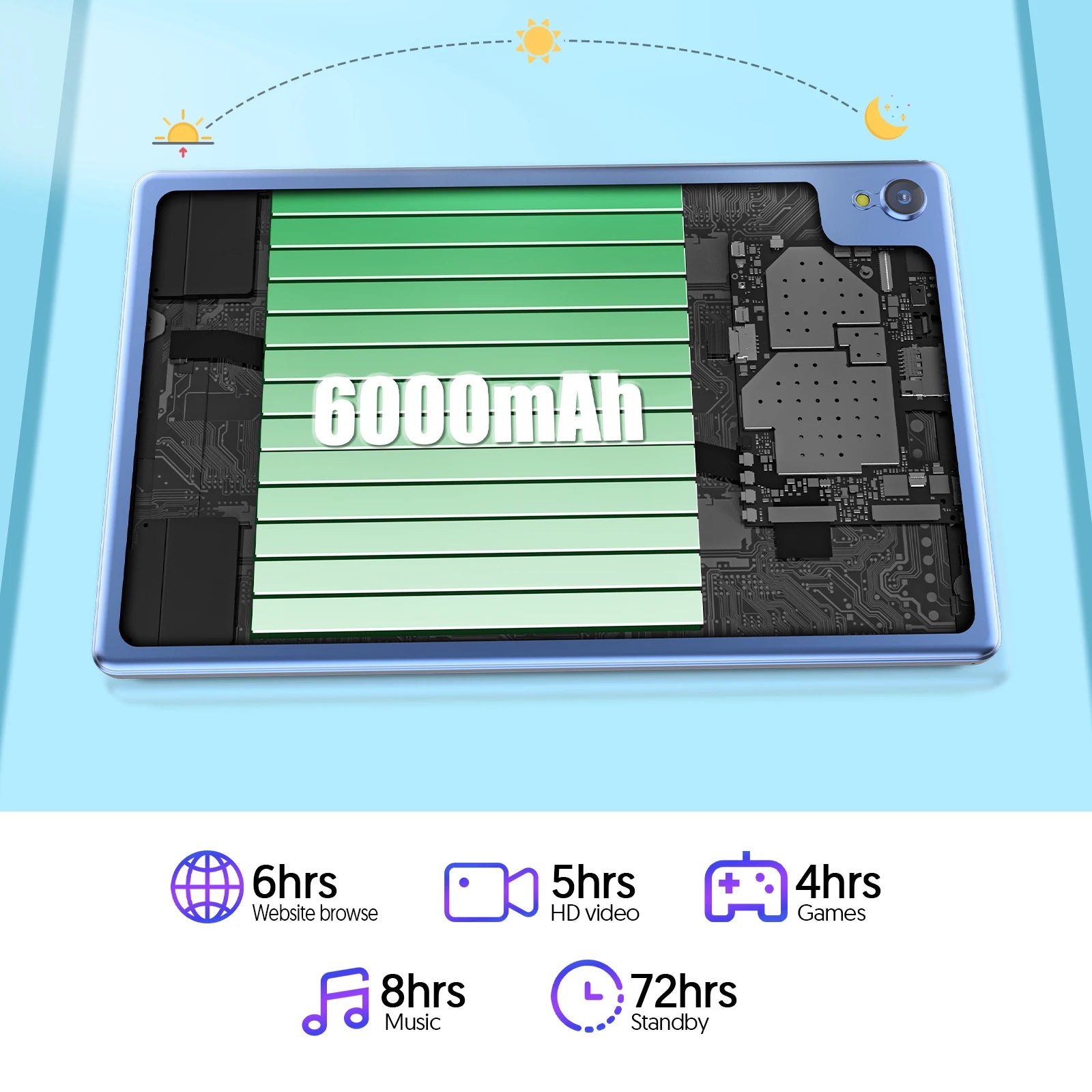 • 6000mAh large-capacity battery: Let you play all day, suitable for traveling
